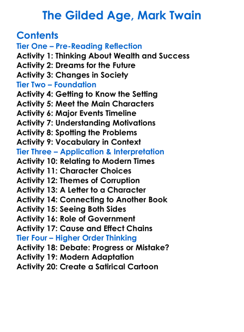 The Gilded Age Mark Twain Worksheet Activity Booklet
