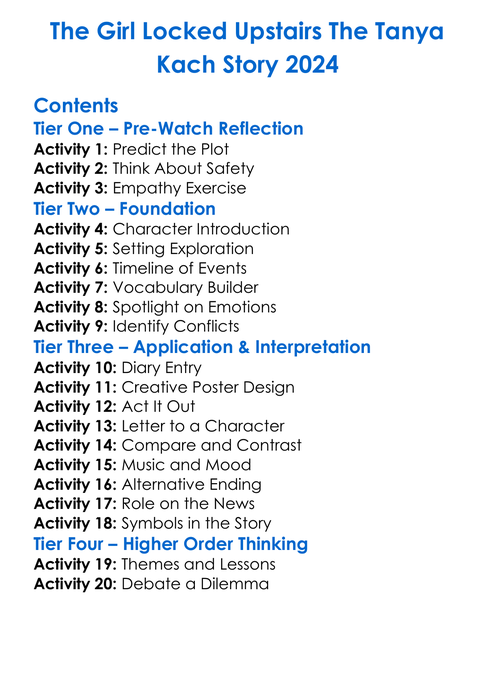 The Girl Locked Upstairs The Tanya Kach Story 2024 Worksheet Activity Booklet