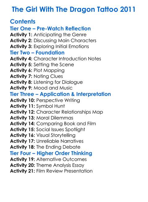 The Girl With The Dragon Tattoo 2011 Worksheet Activity Booklet