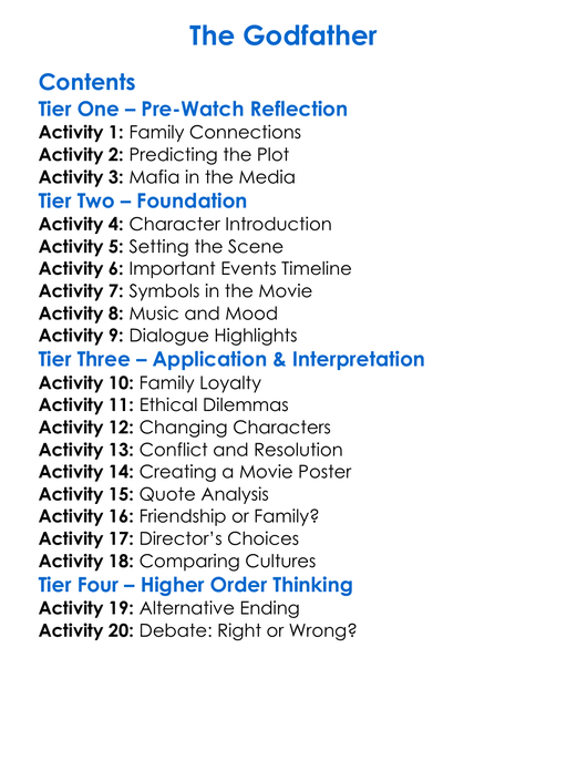 The Godfather Worksheet Activity Booklet