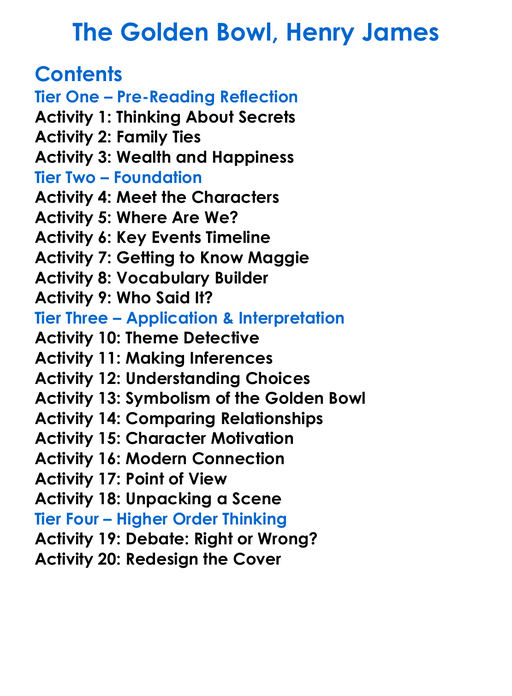 The Golden Bowl Henry James Worksheet Activity Booklet