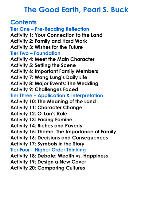 The Good Earth Pearl S Buck Worksheet Activity Booklet
