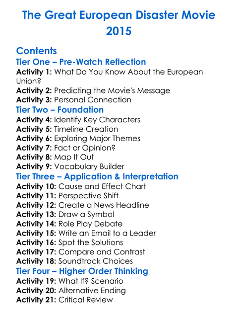 The Great European Disaster Movie 2015 Worksheet Activity Booklet
