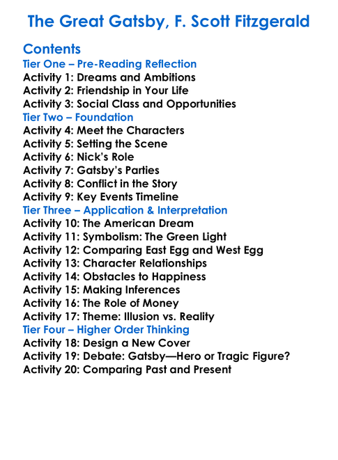 The Great Gatsby F Scott Fitzgerald Worksheet Activity Booklet