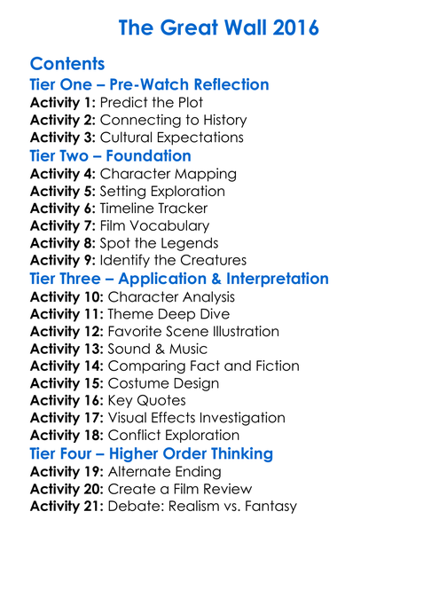 The Great Wall 2016 Worksheet Activity Booklet