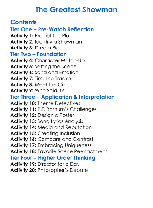 The Greatest Showman Worksheet Activity Booklet