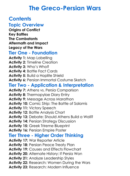 The Greco-Persian Wars Worksheet Activity Booklet