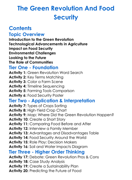 The Green Revolution And Food Security Worksheet Activity Booklet