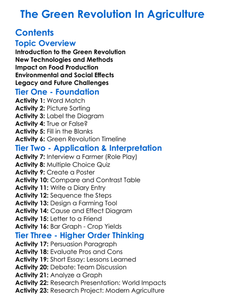 The Green Revolution In Agriculture Worksheet Activity Booklet
