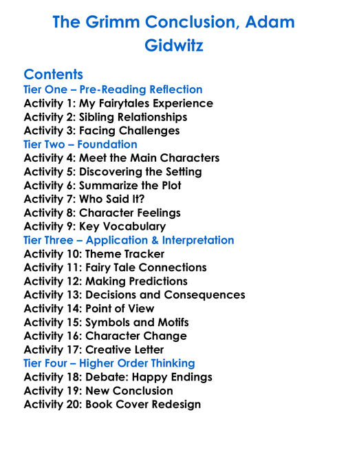The Grimm Conclusion Adam Gidwitz Worksheet Activity Booklet