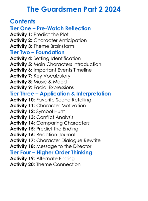 The Guardsmen Part 2 2024 Worksheet Activity Booklet