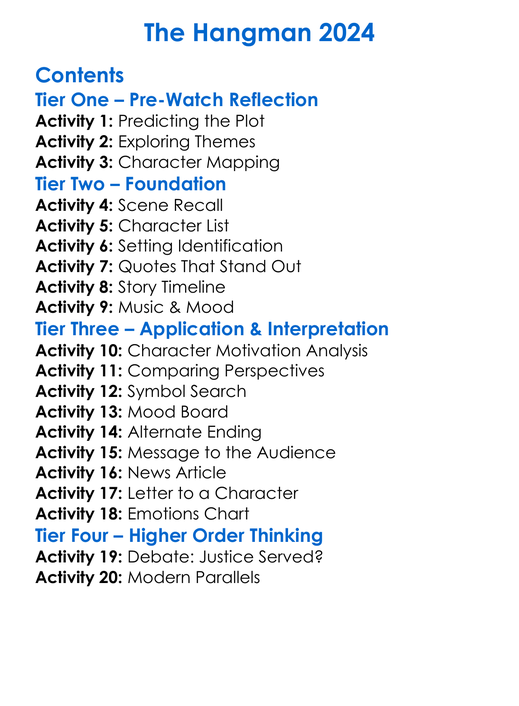 The Hangman 2024 Worksheet Activity Booklet