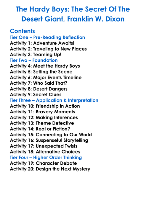 The Hardy Boys The Secret Of The Desert Giant Franklin W Dixon Worksheet Activity Booklet