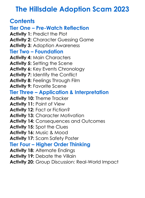 The Hillsdale Adoption Scam 2023 Worksheet Activity Booklet
