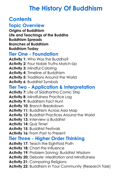 The History Of Buddhism Worksheet Activity Booklet