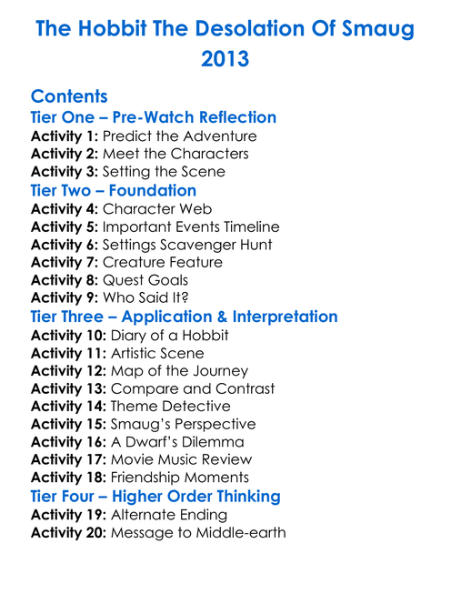 The Hobbit The Desolation Of Smaug 2013 Worksheet Activity Booklet