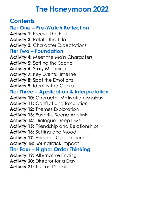 The Honeymoon 2022 Worksheet Activity Booklet