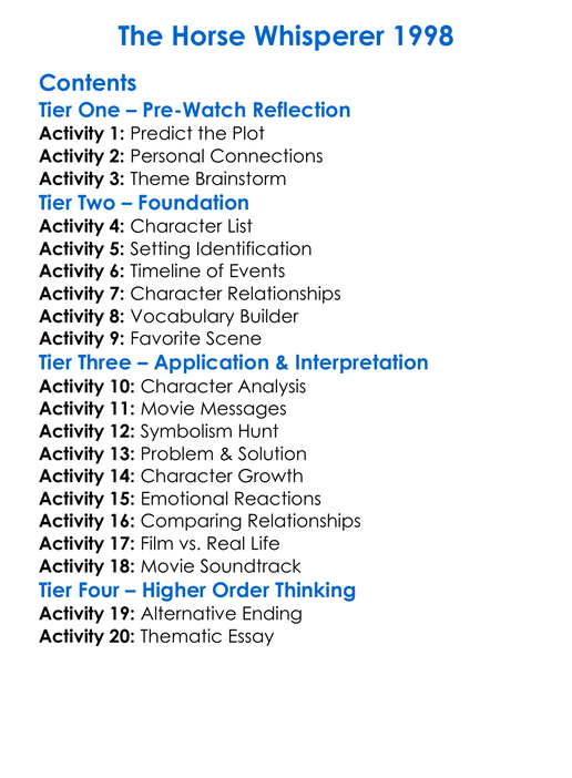 The Horse Whisperer 1998 Worksheet Activity Booklet