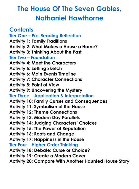 The House Of The Seven Gables Nathaniel Hawthorne Worksheet Activity Booklet