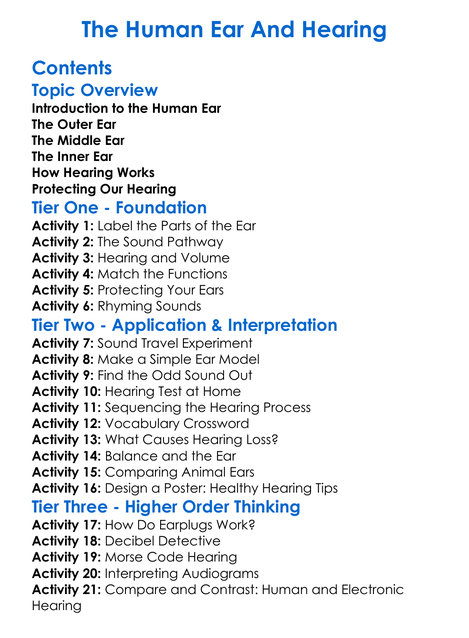 The Human Ear And Hearing Worksheet Activity Booklet