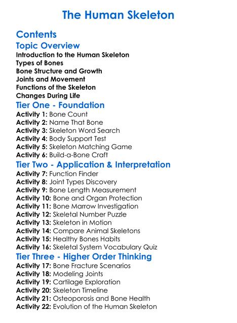 The Human Skeleton Worksheet Activity Booklet