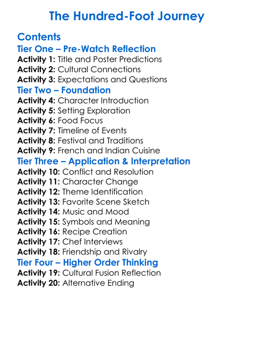 The Hundred-Foot Journey Worksheet Activity Booklet
