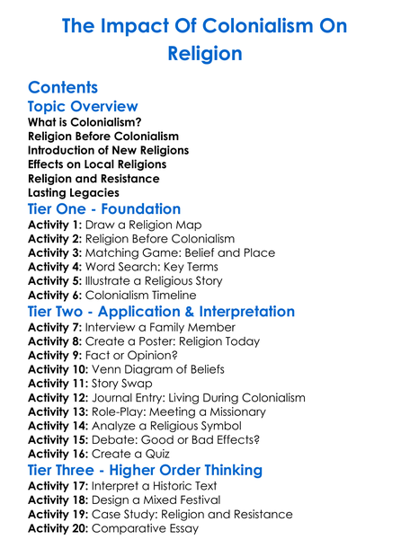 The Impact Of Colonialism On Religion Worksheet Activity Booklet