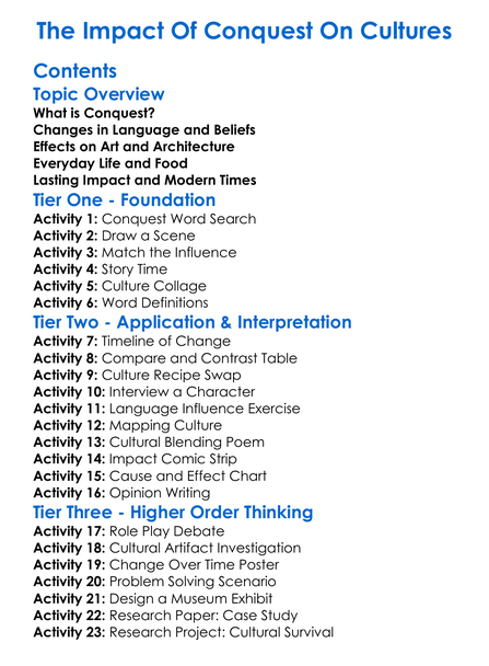 The Impact Of Conquest On Cultures Worksheet Activity Booklet