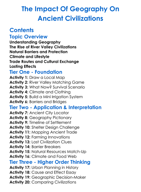 The Impact Of Geography On Ancient Civilizations Worksheet Activity Booklet