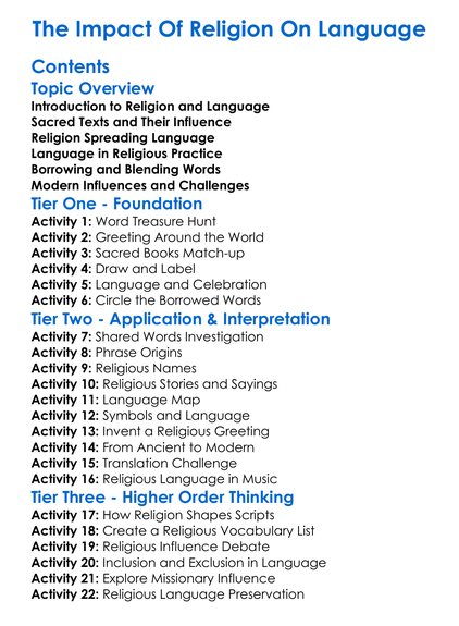 The Impact Of Religion On Language Worksheet Activity Booklet