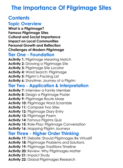 The Importance Of Pilgrimage Sites Worksheet Activity Booklet
