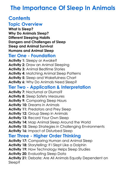The Importance Of Sleep In Animals Worksheet Activity Booklet