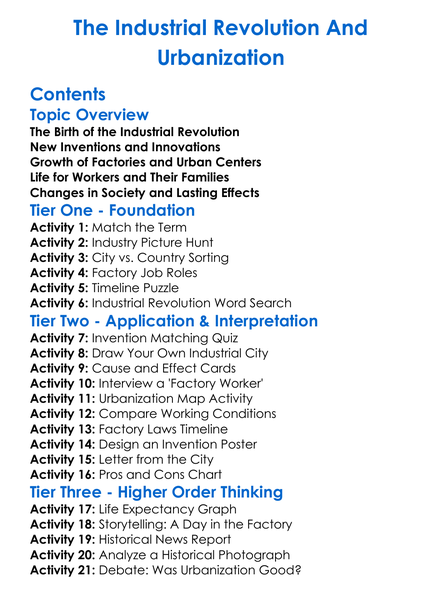 The Industrial Revolution And Urbanization Worksheet Activity Booklet