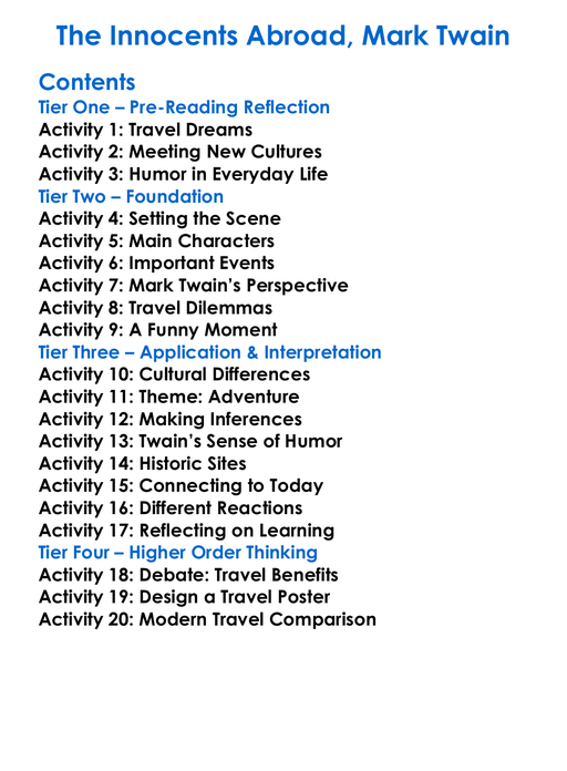 The Innocents Abroad Mark Twain Worksheet Activity Booklet