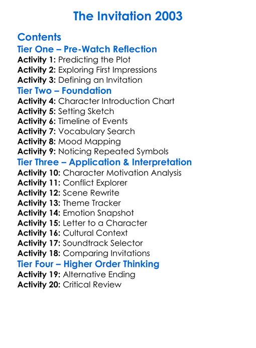 The Invitation 2003 Worksheet Activity Booklet