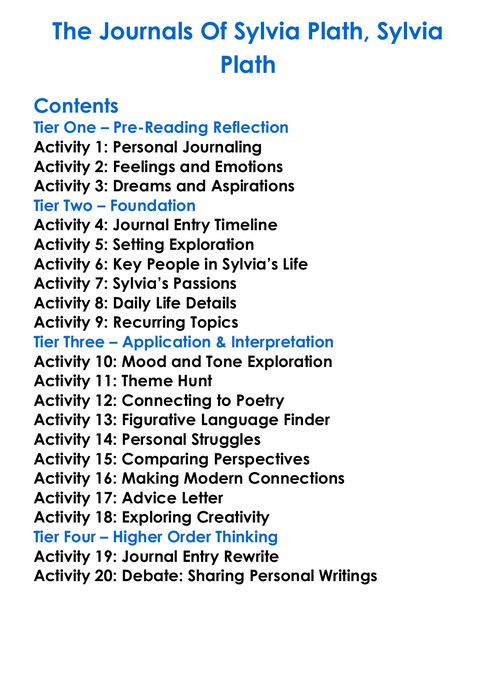 The Journals Of Sylvia Plath Sylvia Plath Worksheet Activity Booklet