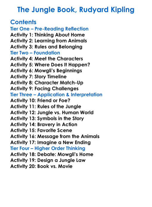 The Jungle Book Rudyard Kipling Worksheet Activity Booklet