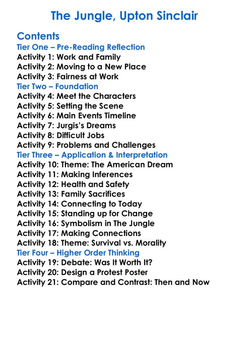 The Jungle Upton Sinclair Worksheet Activity Booklet