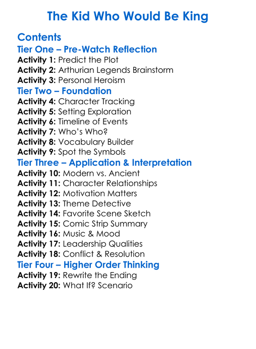The Kid Who Would Be King Worksheet Activity Booklet