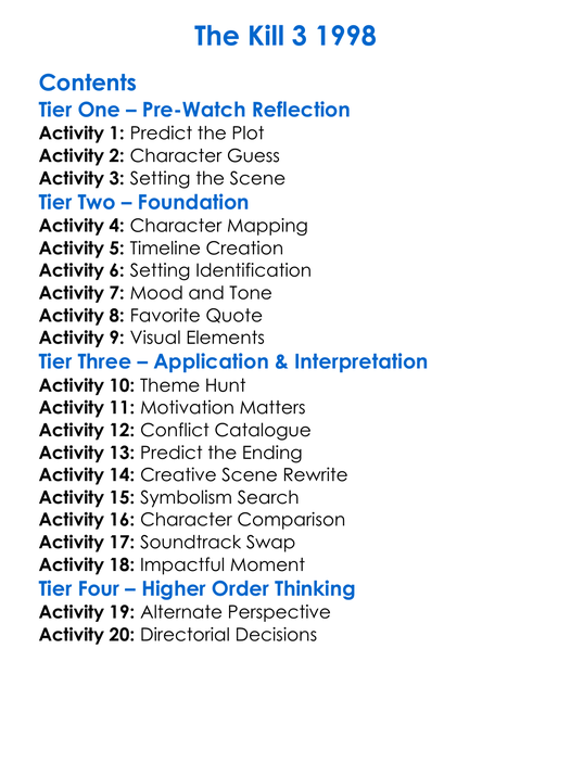 The Kill 3 1998 Worksheet Activity Booklet
