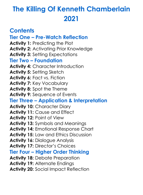The Killing Of Kenneth Chamberlain 2021 Worksheet Activity Booklet
