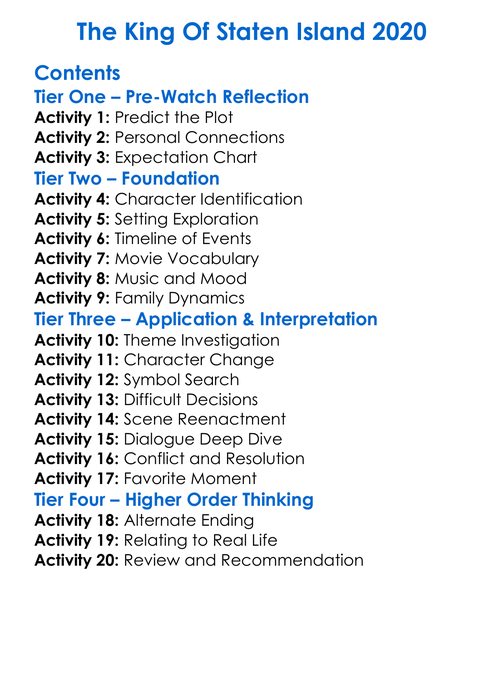 The King Of Staten Island 2020 Worksheet Activity Booklet