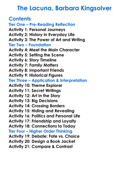 The Lacuna Barbara Kingsolver Worksheet Activity Booklet