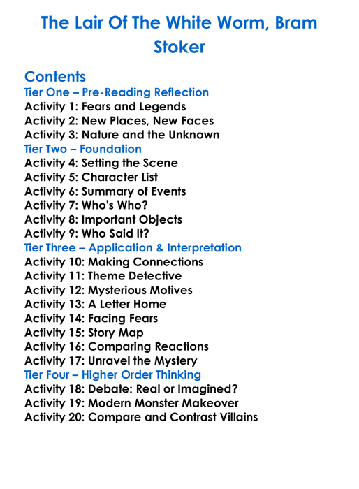 The Lair Of The White Worm Bram Stoker Worksheet Activity Booklet
