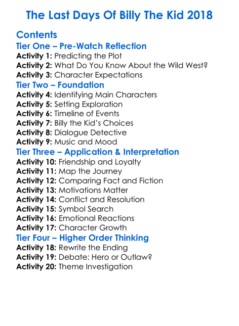 The Last Days Of Billy The Kid 2018 Worksheet Activity Booklet