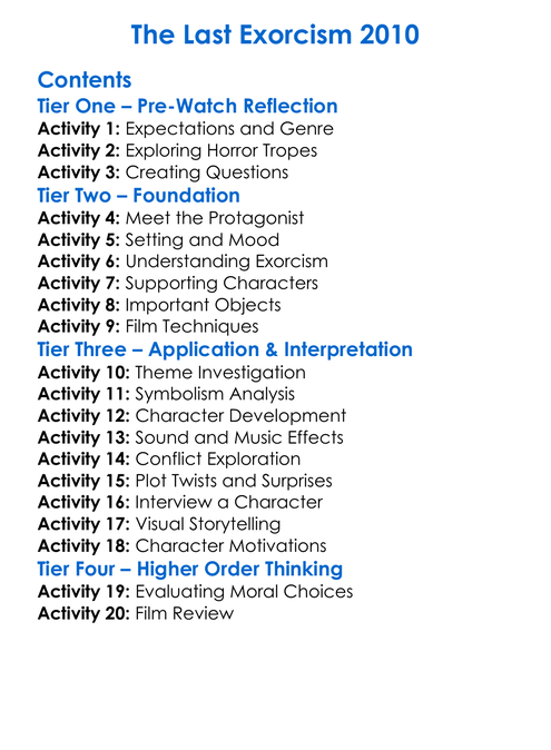 The Last Exorcism 2010 Worksheet Activity Booklet