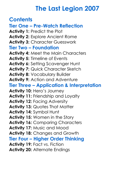 The Last Legion 2007 Worksheet Activity Booklet