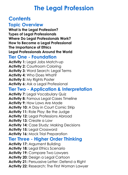 The Legal Profession Worksheet Activity Booklet