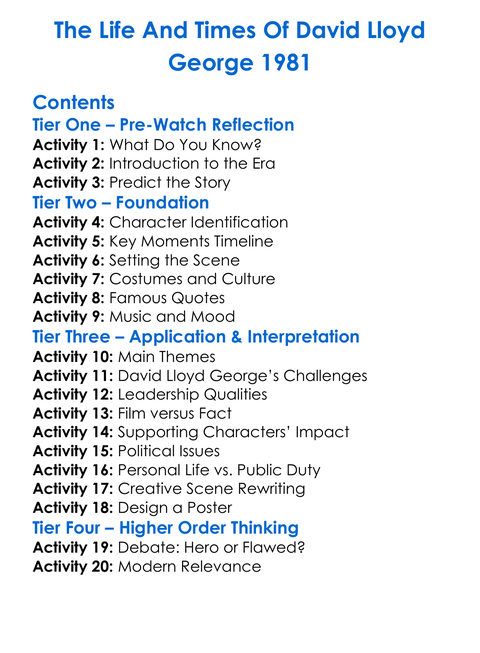 The Life And Times Of David Lloyd George 1981 Worksheet Activity Booklet