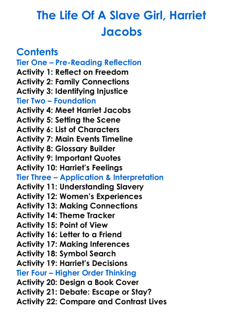 The Life Of A Slave Girl Harriet Jacobs Worksheet Activity Booklet